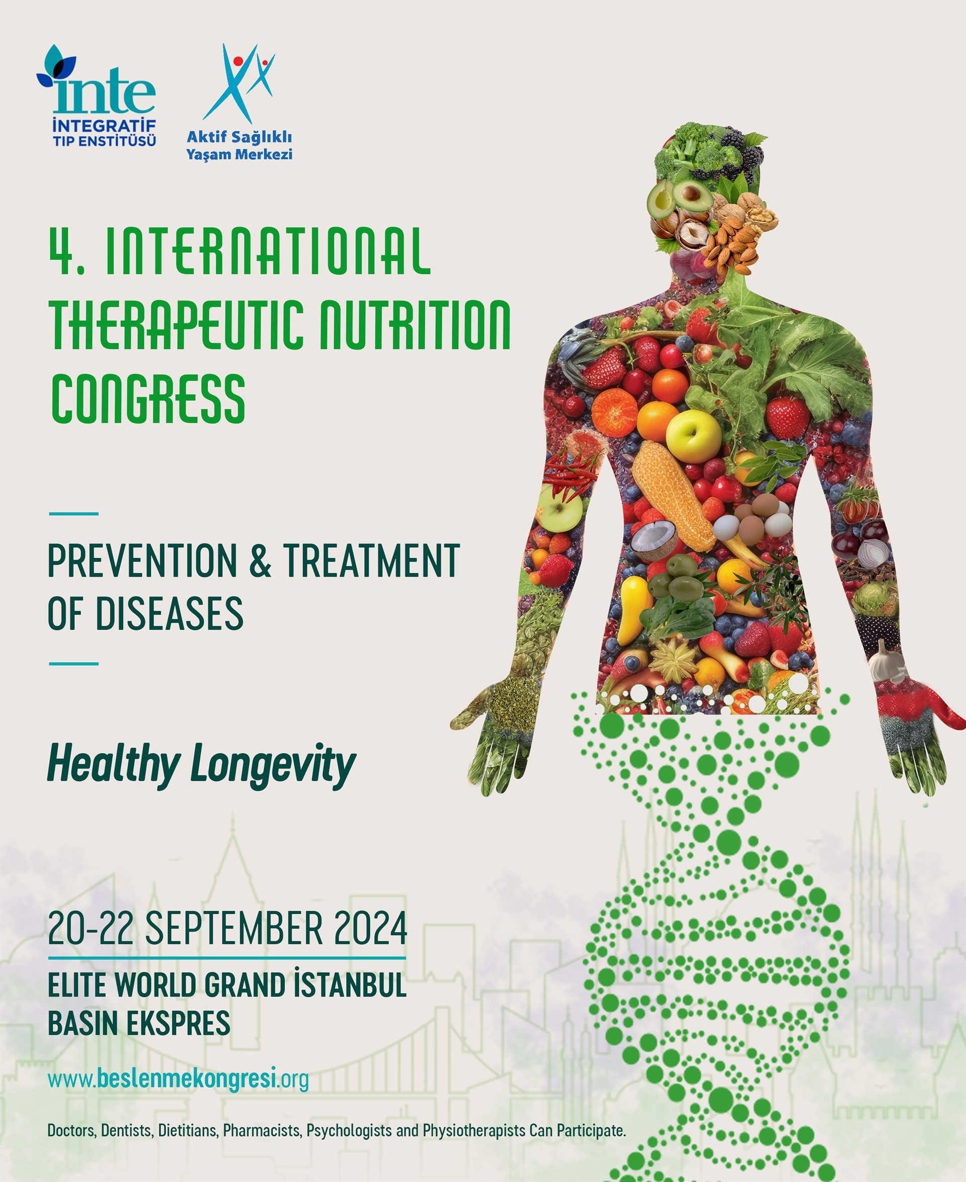 We desire to discuss nutrition from global to cell level, immunity, natural treatments, sleep, exercise, breathing, association of mental and physical health and individualized treatments once again. Therefore, as the Institute of Integrative Medicine, we will hold the FourthINTERNATIONAL CONGRESS ON THERAPEUTIC NUTRITION on September 20-22, 2024 at Elite World Grand Basın Ekspres Hotel in Istanbul, Turkey