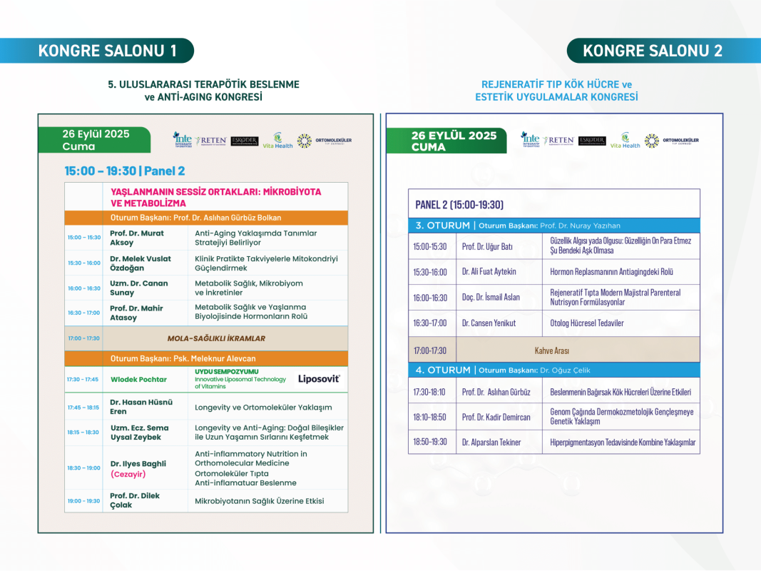 5. Uluslararası Terapötik Beslenme ve Anti-Aging Kongresi 26 - 28 Eylül 2025
